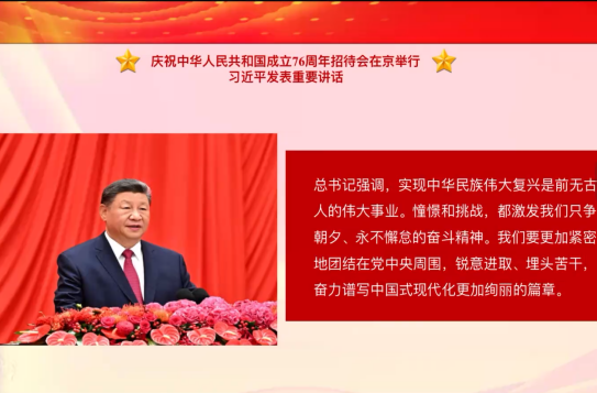 8号楼党小组聚焦习近平总书记在庆祝中华人民共和国成立76周年招待会上的重要讲话开展线上专题研学,通过数据梳理、成就回顾等方式,系统解读习近平总书记对新中国成立76年来的成就总结,深刻认识到团结奋斗是创造历史伟业的必由之路,马香、岳艺彤、王文秀等同志结合自身工作实际分享感悟,形成“以专业能力强自信、以个人成长助强国”的共识。