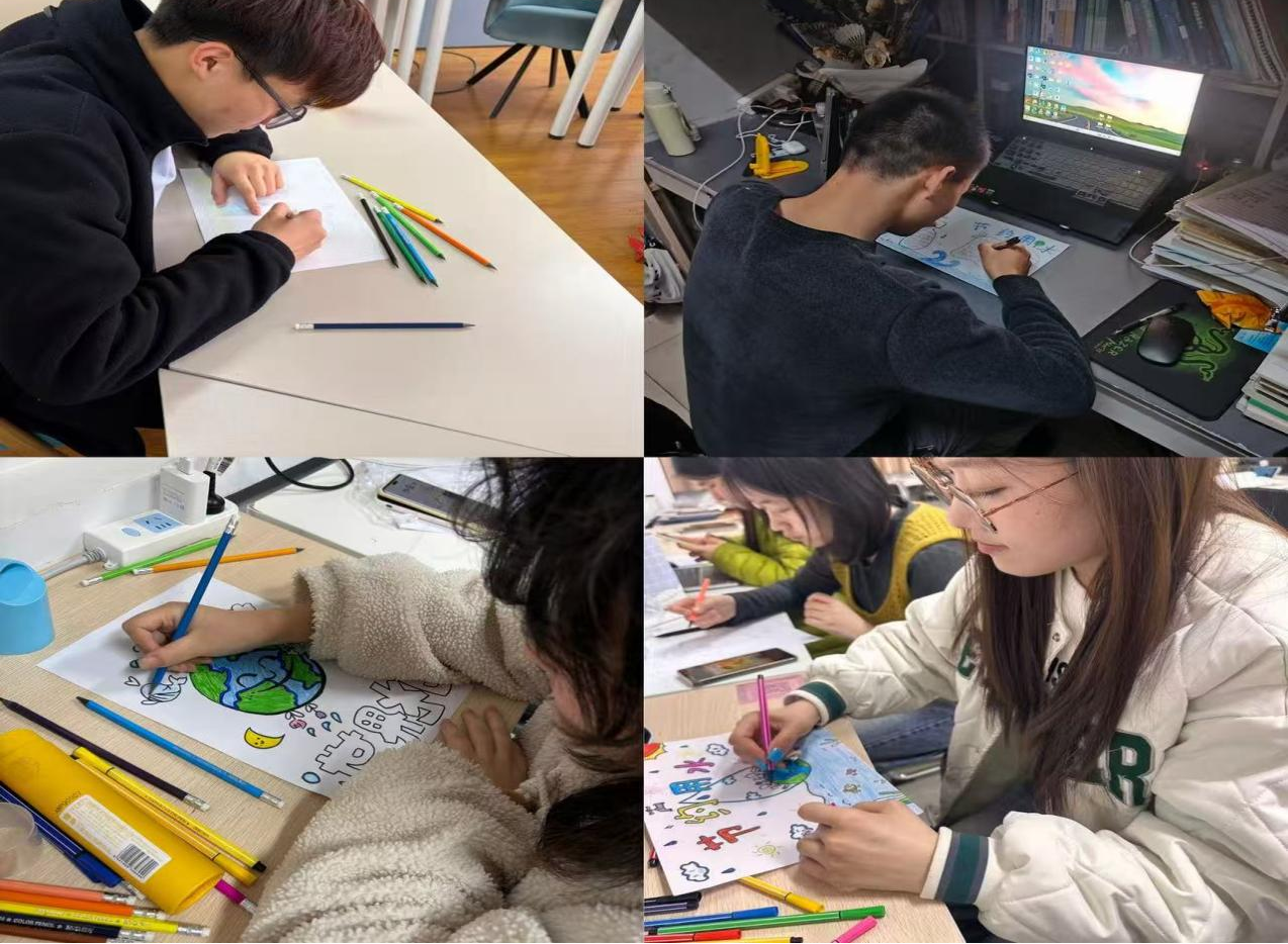 紧接着,全体党员参与“水绘青春・筑梦山河”水生态主题彩绘创作,以画笔勾勒碧水清流,将节水理念与专业情怀融入作品,生动展现土水学子守护水生态的青春风采。作品展示后,全体成员合影留念。