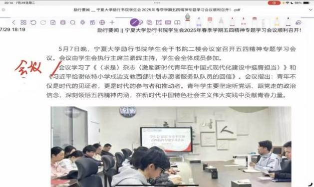 为深化学生组织思想教育工作,全面提升其综合能力,7月29日晚,书院学生组织于线上开展2025年暑期培训(第二期)。本次培训由励行书院学生会主席团成员王浩宇领学《习近平:团结奋斗是中国人民创造历史伟业的必由之路》,励行书院团委副书记(学生)腊天阳进行推文撰写与活动策划培训,书院学生组织全体成员参加。本次培训围绕“理论学习与实务技能”展开,共两讲。