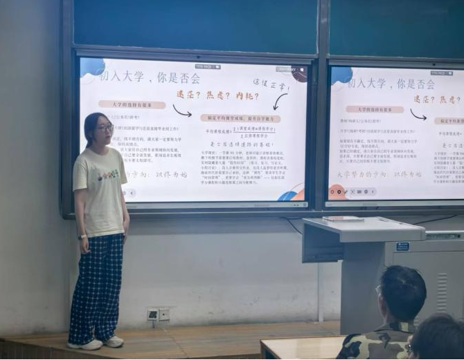 在学生工作专题中,李晓楠、邱佳丽、叶坤赟首先介绍了校级学生组织架构,清晰地阐释了不同组织部门的职责与定位,同时,深入讲解作为学生骨干应具备的能力与素养,让新生对学生工作有了更全面的认识。此外,他们还分享了从事学生工作的诸多收获,激发了新生参与学生工作的热情,助力其在服务同学与自我成长中找到平衡。