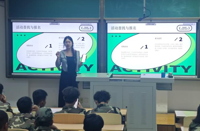 在校园活动专题,李懿桐、邸悦、摆小梅、吴佳欣、张菊为同学们带来了到梦空间APP使用指南,介绍了常见校园活动分类、志愿活动资源获取渠道,以及参与活动过程中的注意事项、活动反馈与权益维护等内容,帮助新生快速掌握校园活动参与的“钥匙”,让新生能更便捷、有序地参与各类校园活动。