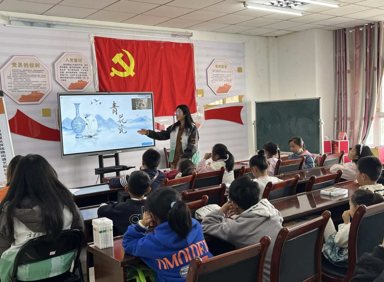 本次举办的是青花瓷主题活动,志愿者们通过展示精美的青花瓷图片,向孩子们介绍了青花瓷的历史。讲解内容涵盖元代到明清时期青花瓷的发展过程、釉下彩的制作工艺。经过志愿者的图文讲解,孩子们对青花瓷背后的历史与工艺知识有所了解。