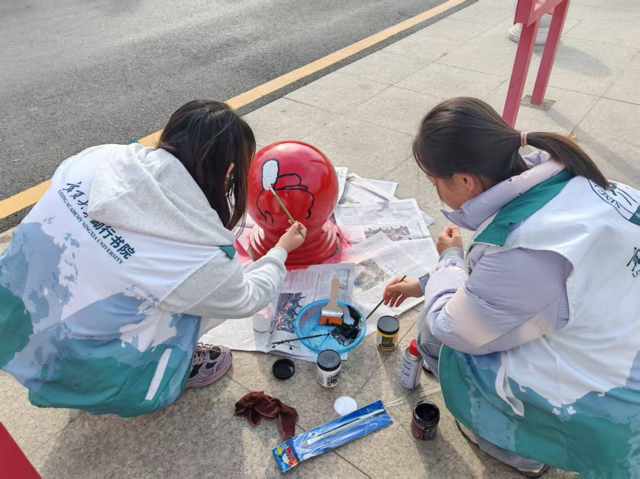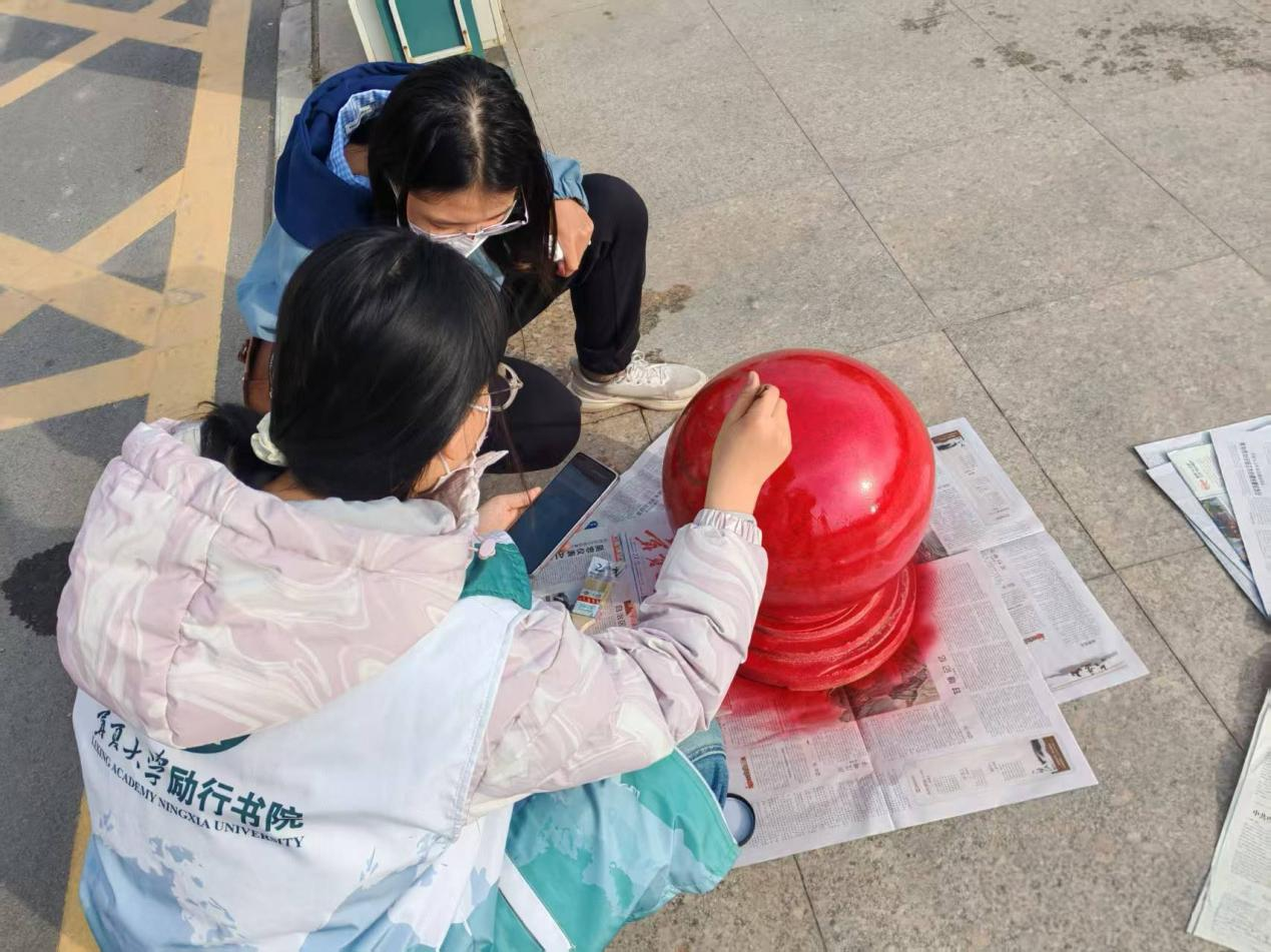 10月29日,宁夏大学励行书院组织志愿者走进芦花洲社区,开展石墩彩绘主题志愿服务活动,以手绘创作改造社区石墩,为社区注入艺术活力。