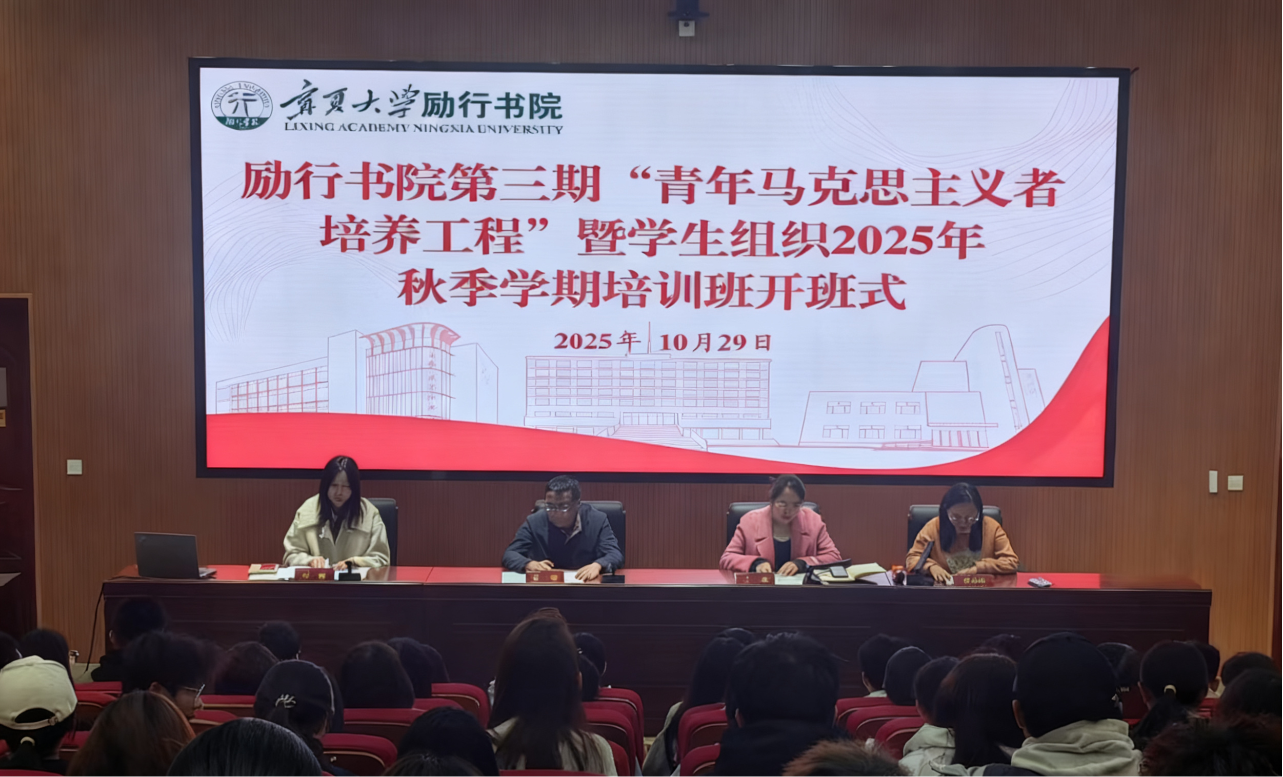 为筑牢青年骨干理想信念之基,锻造坚定的青年马克思主义者,10月29日晚,励行书院于知行楼一楼报告厅举办了第三期“青年马克思主义者培养工程”暨学生组织2025年秋季学期培训班开班式,书院党委书记、院长张强,党委委员、副院长王娜,团委负责教师、学生会秘书长谭颖,学生心理健康中心、研究生会秘书长樊奈昀以及全体学员参加了本次开班式。