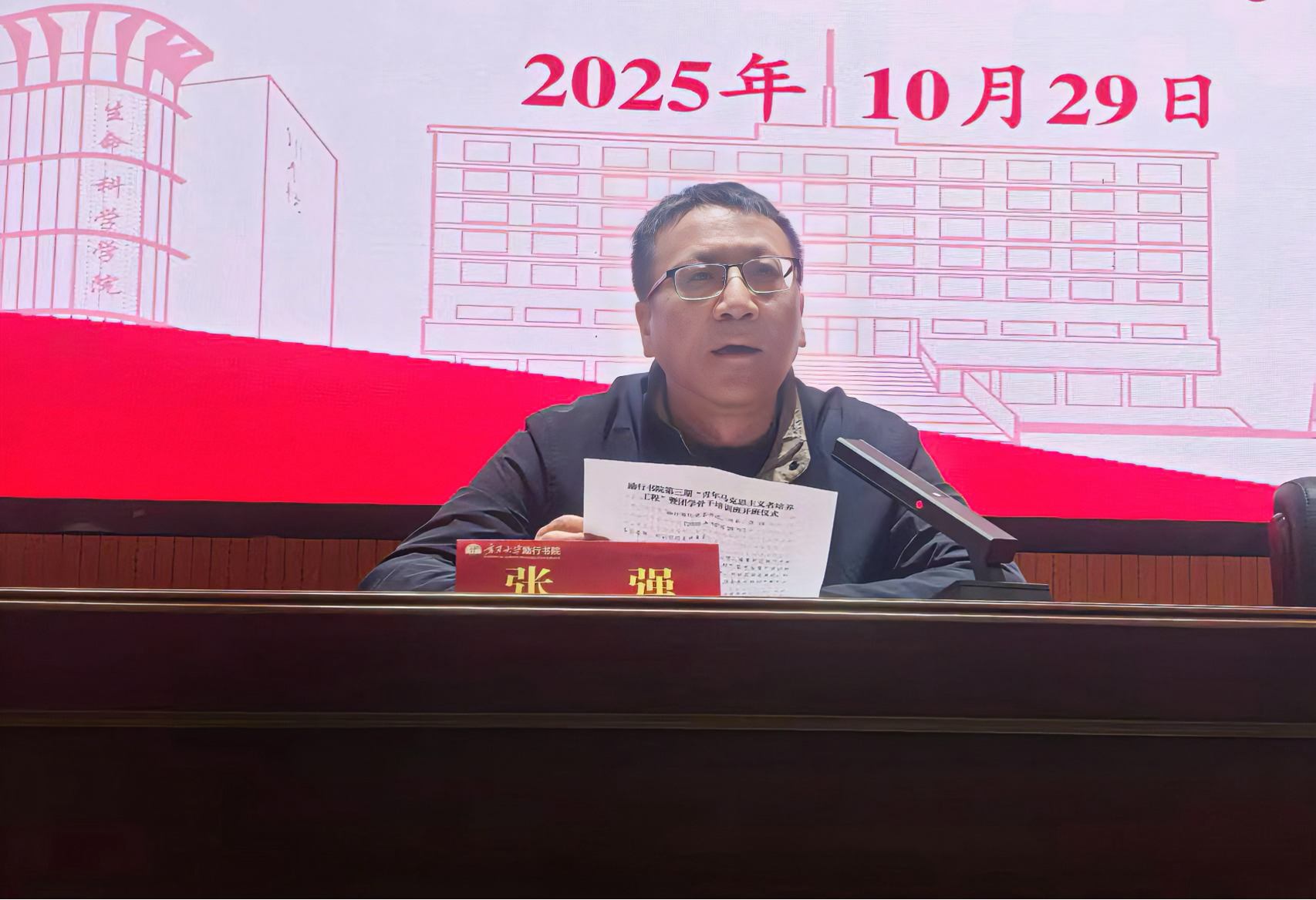 张强做开班动员讲话。张强对“青年马克思主义者培养工程”的重要意义进行了深刻阐述,又对全体学员提出了三点殷切希望:一是要筑牢信仰之基,做追求真理、信念坚定的表率;二是要提升干事之能,做勤学善思、勇于实践的先锋;三是要涵养优良之风,做服务同学、甘于奉献的榜样。