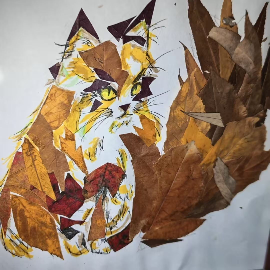 枯黄染就小王子的星途憧憬斑斓叶片拼缀魔术帽的奇幻惊喜每一道叶纹都是巧思伏笔每一次叠贴都藏着浪漫脑洞。