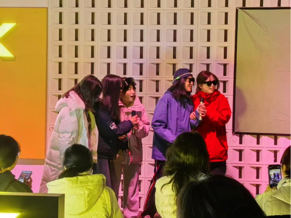 除了精彩纷呈的节目,互动环节“击鼓传花”更是点燃了全场的参与热情。围绕立冬习俗、节气知识等趣味问题,同学们踊跃抢答,智慧的火花不断碰撞。伴随着欢声笑语,一份份精美小礼品也传递到幸运观众手中。“撒糖”互动更让温暖蔓延,让陌生变为熟悉,让距离化为笑颜,整个空间洋溢着甜蜜与融融暖意。