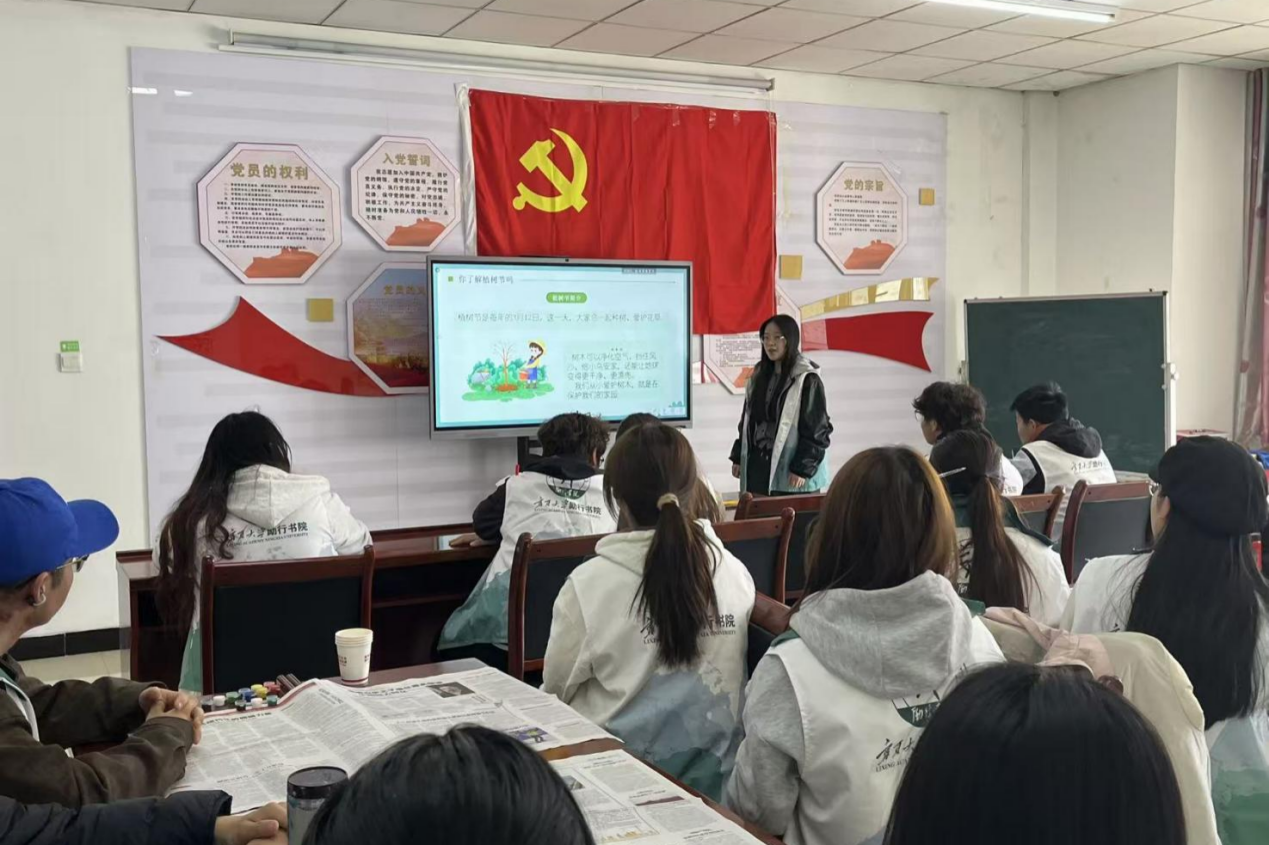 志愿者以“种下一片绿意,让生活更低碳”为主题开展宣讲,讲解植树节起源、树木养护及生态环保意义,引导居民树立绿色理念。
