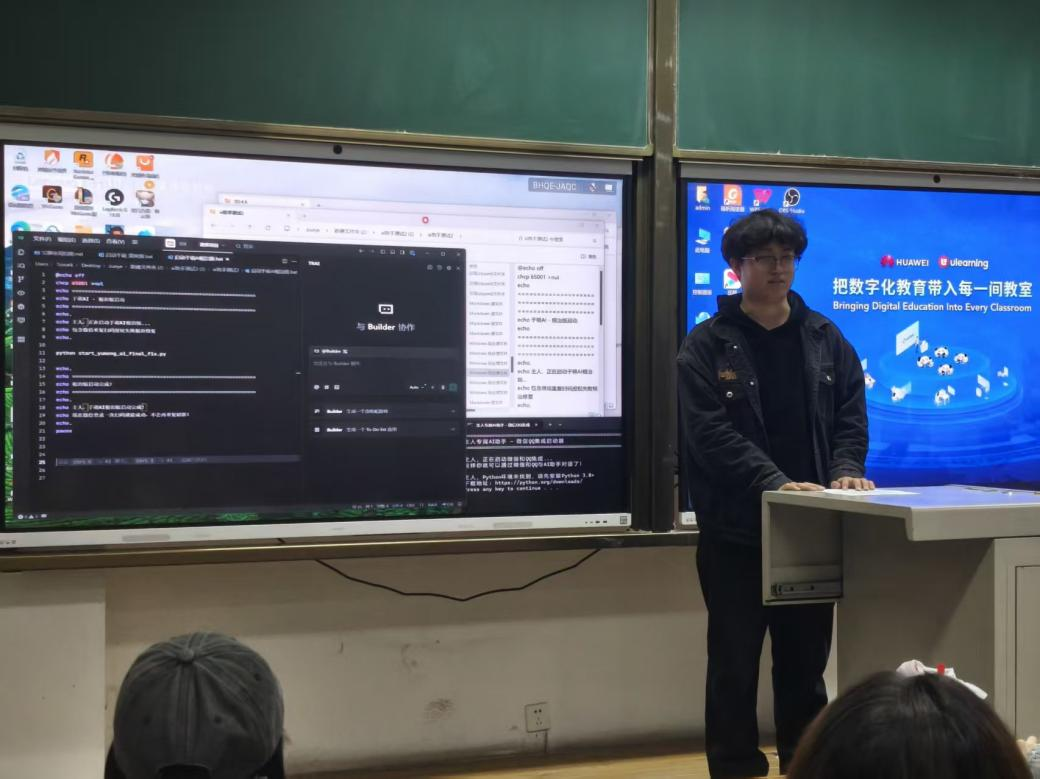 在本次科普讲坛中,黄可以专业的视角为同学们解锁AI与VR领域的知识密码,带来了兼具专业性与实用性的分享。他围绕AI与VR核心技术展开讲解,以个性化定制为核心,整合丰富教育资源与AI、VR等先进技术,赋能学生借助现代科技实现高效学习;通过打造沉浸式、可感知的科技应用场景,将抽象知识具象化,精准对接学生学习与成长需求;积极倡导学生参与课外活动,激发学习兴趣,铸就自信风采,真正以科技赋能教育,助力学生全面发展。从技术原理到实际应用,从发展趋势到学习方向,黄可的讲解层层递进,既为同学们普及了AI与VR的专业知识,也引导大家思考科技与学习、生活的融合方式,让在场同学对前沿科技有了更清晰、更全面的认知,也为大家未来的学习与探索打开了新的思路。