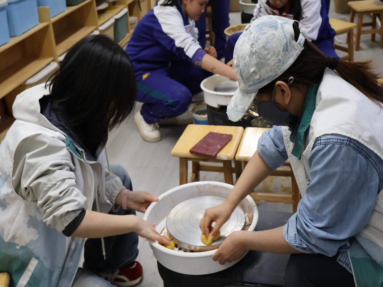 活动中,志愿者帮助中学生们制作扭扭棒手工,讲解缠绕、弯折技巧,协助同学们使用热熔胶枪,做好防烫防护。志愿者还与同学们参与陶艺捏塑,完成揉泥、塑形、刻画纹路等操作,在互动中传递知识与欢乐,用陪伴温暖校园,以志愿助力成长。