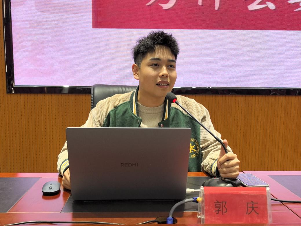 郭庆同学以社会实践为核心,结合深入基层参与社会调研、投身一线实践项目的经历,分享了在服务社会、了解国情过程中的成长感悟。他告诉与会同学,社会实践是青年成长的“磨刀石”,只有扎根大地、深入群众,才能真正理解“从群众中来,到群众中去”的深刻内涵,在实践中锤炼本领、增长才干,用实干诠释新时代青年的责任担当。