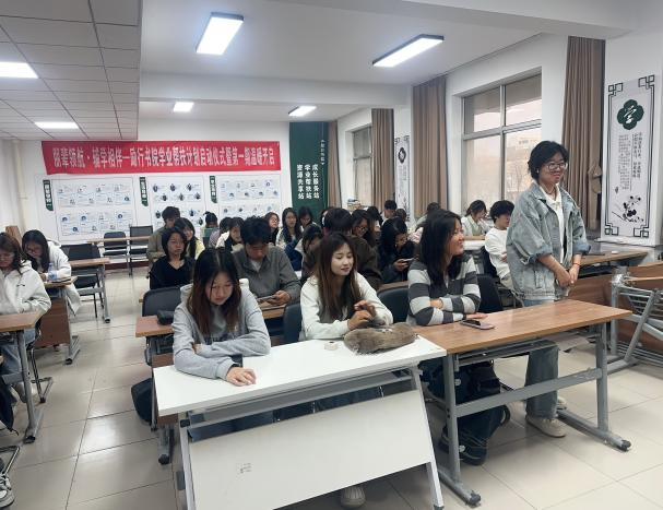 朋辈导师刘懿霆以朋友身份轻松对话,用现场随机提问的方式“敲醒”低头族,倡导拒绝短视频沉迷。她结合自己改掉熬夜的经历,分享人际四步法“接纳、尝试、沟通、助人”,并鼓励同学们主动请教老师、积极参与大创等实践行为,在试错中突破自我。