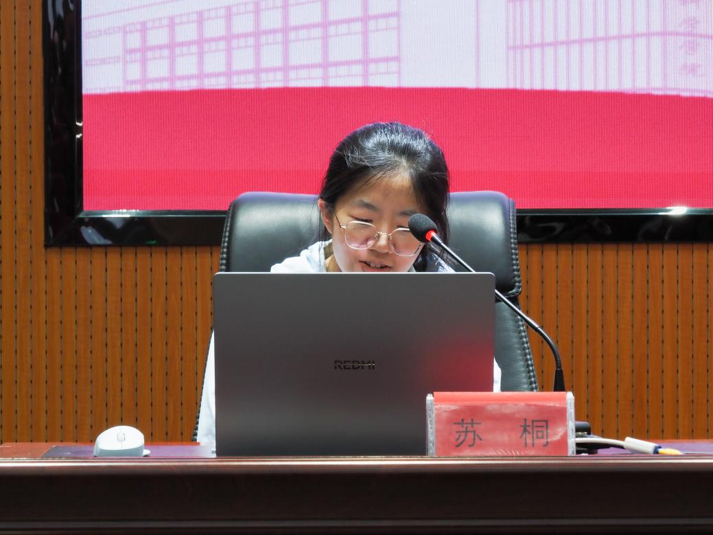 苏桐同学围绕专业学习、学科竞赛等内容,结合自身在学业提升方面的经历开展分享。她谈到,学业之“优”不仅体现为扎实的专业成绩与持续的学习投入,更反映在对学术规范的严格遵守、对自我要求的不断提高和对专业能力的有效检验与拓展。她呼吁与会同学珍惜大学时光,夯实知识根基,积极参与学科竞赛与学习交流,在勤奋学习中锤炼过硬本领,在持续积累中实现成长进步。