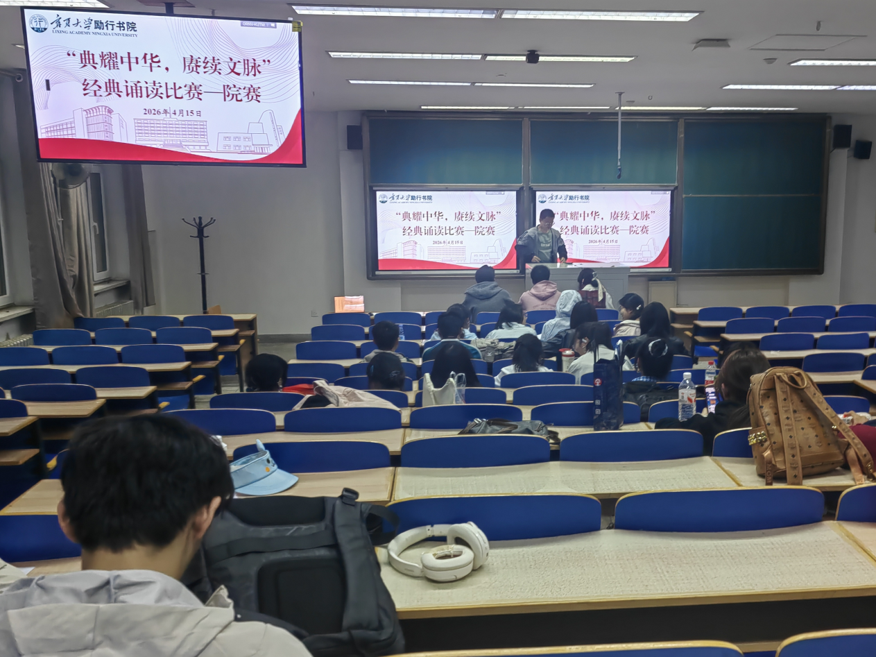 为深入学习贯彻习近平文化思想,传承中华优秀传统文化,激发青年学子爱国情怀,4月15日晚,宁夏大学“典耀中华,赓续文脉”经典诵读比赛励行书院初赛在文萃一教221教室顺利举行。
